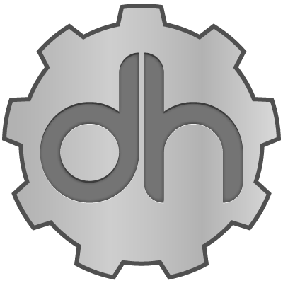 I liked the curve of the letters in the original logo and how they fit inside the gear, but I was having trouble finding anything like that, or really any fonts with d and h that would fit nicely inside the curve of the gear.